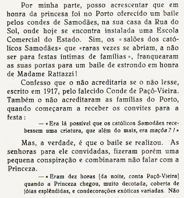 9.27 - Testemunho de Madame Rattazzi - Le Portugal à vol d'oiseau, "Charge" ao livro, Hotel Francfort, Diferenças entre Lisboa e Porto, "Cidade muito obstinada", A Caridade muito praticada no Porto, Baile do Conde de Samodães em honra da Rattazzi,