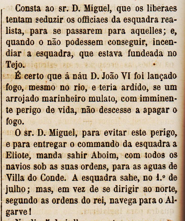 A notícia é dada pela Crónica Constitucional de Lisboa e pela Crónica Constitucional do Porto, no Suplemento ao nº 174 da Crónica Constitucional do Porto, 26 de Julho de 1833, edição de 6ª feita:
